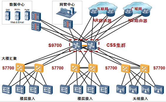 - 多(duō)業務路由交換平台,滿足企業接入、彙聚、核心業務承載要求,支持無線、語音(yīn)、視頻(pín)和(hé)數據應用(yòng),爲企業提供高(gāo)可(kě)用(yòng)、低時(shí)延、全業務的(de)一體化(huà)網絡解決方案。