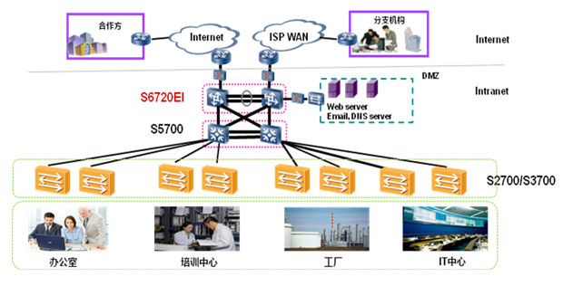 S6720-EI可(kě)用(yòng)于中小型園區(qū)網的(de)核心,其業界領先的(de)高(gāo)密度全線速萬兆端口,順應網絡帶寬需求日益膨脹的(de)趨勢;其豐富的(de)業務特性、完善的(de)安全控制機制使得(de)S6720成爲園區(qū)交換機最高(gāo)性價比的(de)選擇。