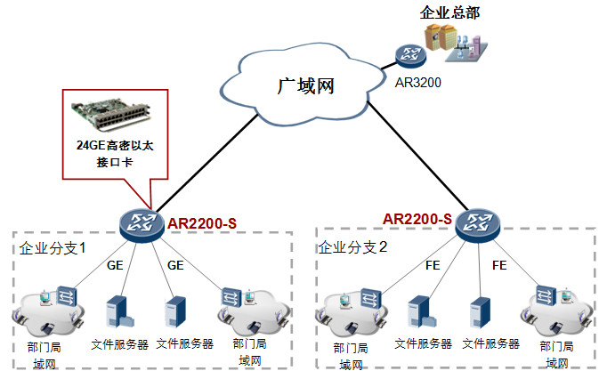 AR2200-S系列企業路由器提供24GE以太接口卡,能實現大(dà)容量高(gāo)密度千兆接入的(de)應用(yòng),方便網絡運維,節省客戶投資。