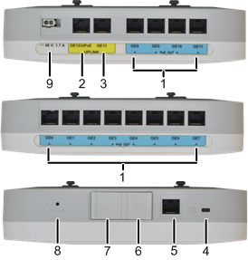 3.GE13:上行網口,用(yòng)于連接AC或上層網絡的(de)交換機。支持10M/100M/1000M自适應。